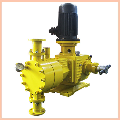 機械隔膜泵:由電機驅動,由電機帶動旋轉,測量泵的柱塞做往復直線運動,從而帶動機械隔膜實現往復運動,實現液體的吸收或排出。